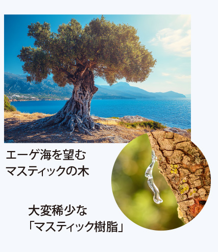 レチノールと似た働きをするギリシャのマスティックの木から採取された「マスティック樹脂」。なめらかでハリのある肌に整えます。